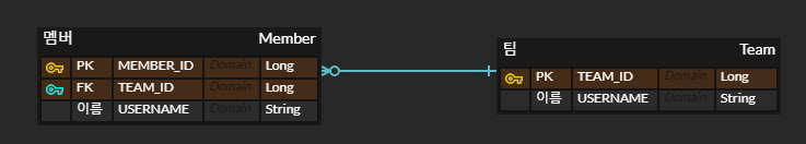 위의 ERD 관계도에서는 TEAM_ID 라는 외래키 하나로 원하는 값 조회 가능